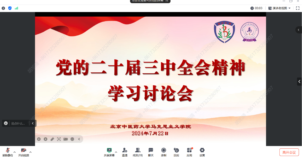 为深入学习贯彻中国共产党第二十届中央委员会第三次全体会议精神,7月22日晚,yl23455永利于线上召开“党的二十届三中全会精神”学习讨论会,参加此次会议的有辅导员李阳老师、研究生党支部书记徐娜老师以及全体研究生,会议由公司研究生宣讲团团长何辰怡主持。