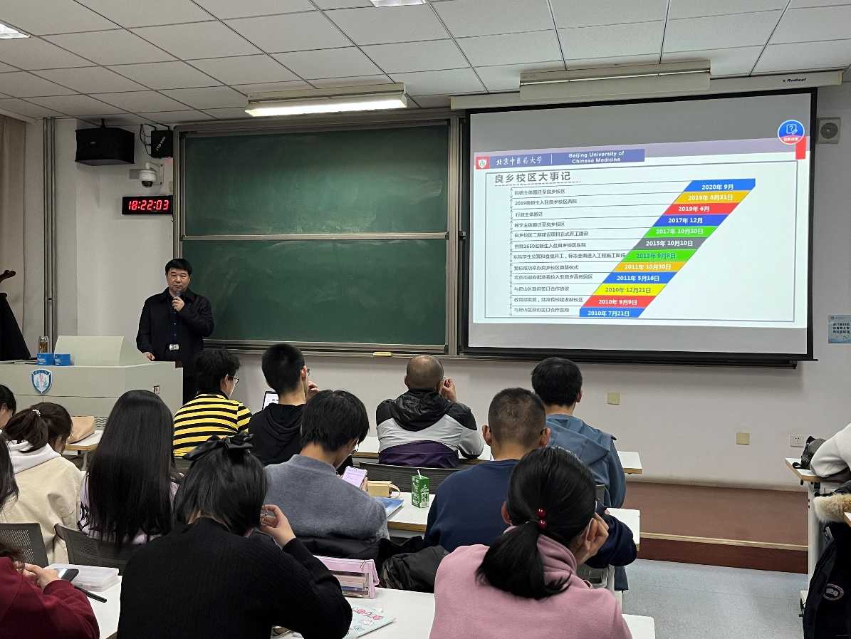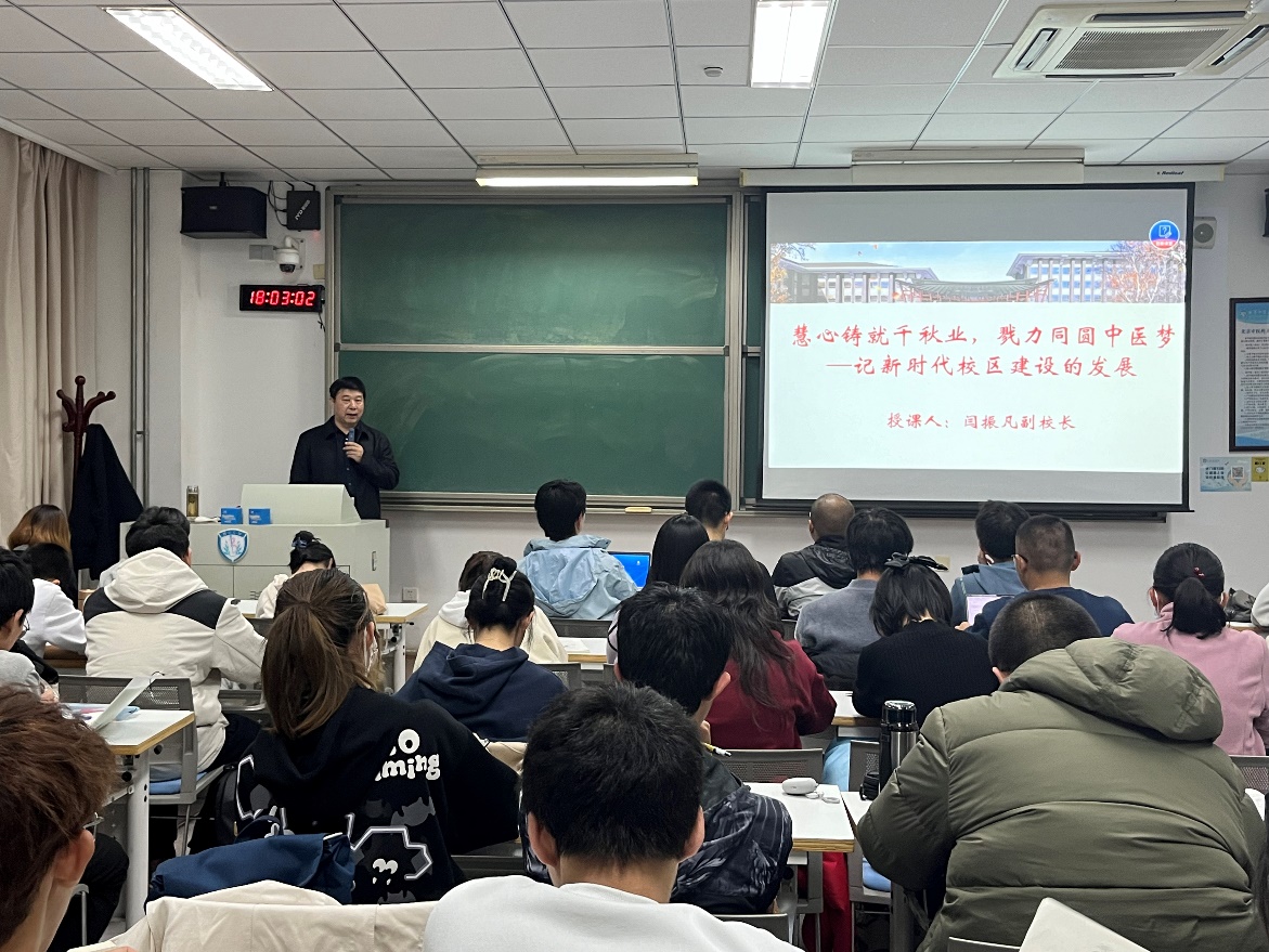 2023年11月22日,yl23455永利集团副董事长闫振凡走进《校史文化与北中医精神》课堂,以《慧心铸就千秋业,戮力同圆中医梦——记新时代校区建设的发展》为题,给同学们分享了新时代以来北中医校区规划建设情况。