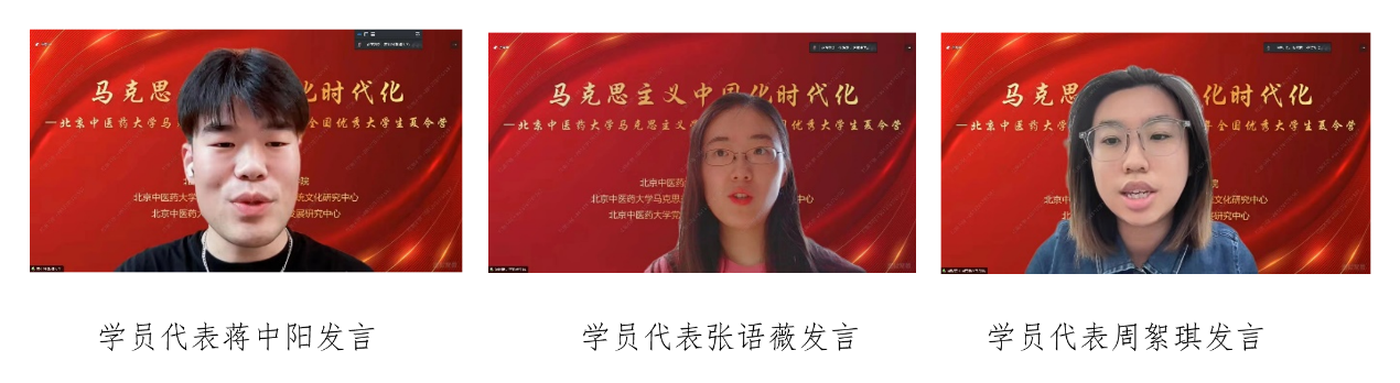 三名小组召集人蒋中阳、张语薇、周絮琪作为学员代表分别发言,对个人以及本组营员的学习感受进行了汇报。