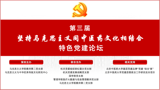 习近平总书记5月11日对推进新时代公司思政课建设作出最新重要指示,指出:“要始终坚持马克思主义指导地位,以中国特色社会主义取得的举世瞩目成就为内容支撑,以中华优秀传统文化、革命文化和社会主义先进文化为力量根基”。本次论坛是践行“第二个结合”的具体体现,特别是将马克思主义同中医药文化相结合,发挥高等中医药院校的特色,为研究和党建工作相融合提供了有力支持。此次活动也是深化落实公司党委组织部“一支部一特色”工作要求,为推动“教育强国,北中医何为”的时代课题具有积极意义。