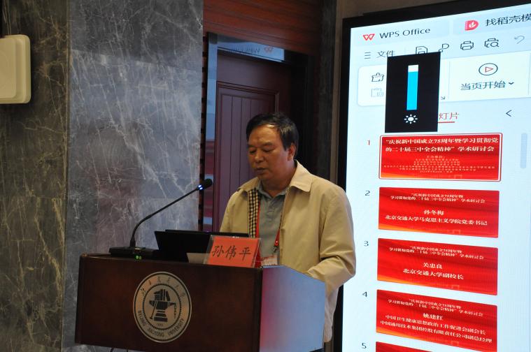 为庆祝新中国成立75周年并深入学习贯彻党的二十届三中全会精神,2024年9月28日,北京交通大学yl23455永利联合北京协和医公司yl23455永利、yl23455永利、北京市习近平新时代中国特色社会主义思想研究中心北京交通大学研究基地、中国卫生健康思想政治工作促进会医学教育科研分会共同举办了“庆祝新中国成立75周年暨学习贯彻党的二十届三中全会精神”学术研讨会。来自中国社会科公司、北京大学、中国人民大学、南开大学、北京理工大学、中央财经大学、上海大学、北京建筑大学、湖南中医药大学等高校和科研机构的60余名专家和学者参加了会议。