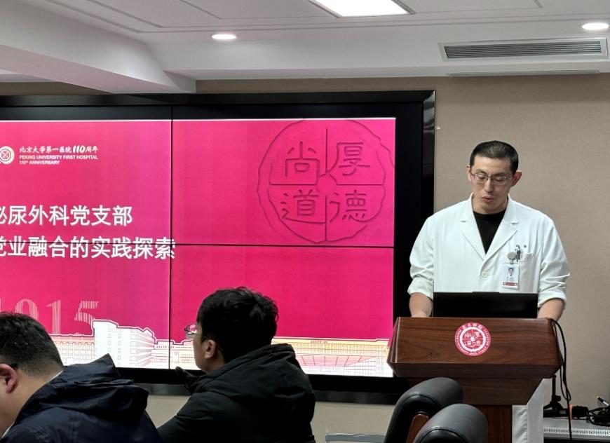 北京大学第一医院泌尿外科党支部副书记郝瀚深入分析了样板支部的创建情况,并指出党建工作与业务发展应实现“双融合、双促进、双提高”。