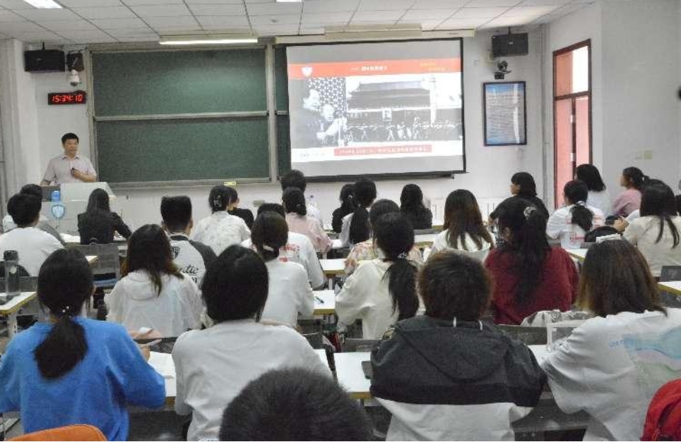 2024年6月4日,yl23455永利集团副董事长闫振凡走进“中国近现代史纲要”课堂,以《巩固新政权的伟大斗争》为题,为2023级中医学05-06班的同学讲授思想政治理论课。