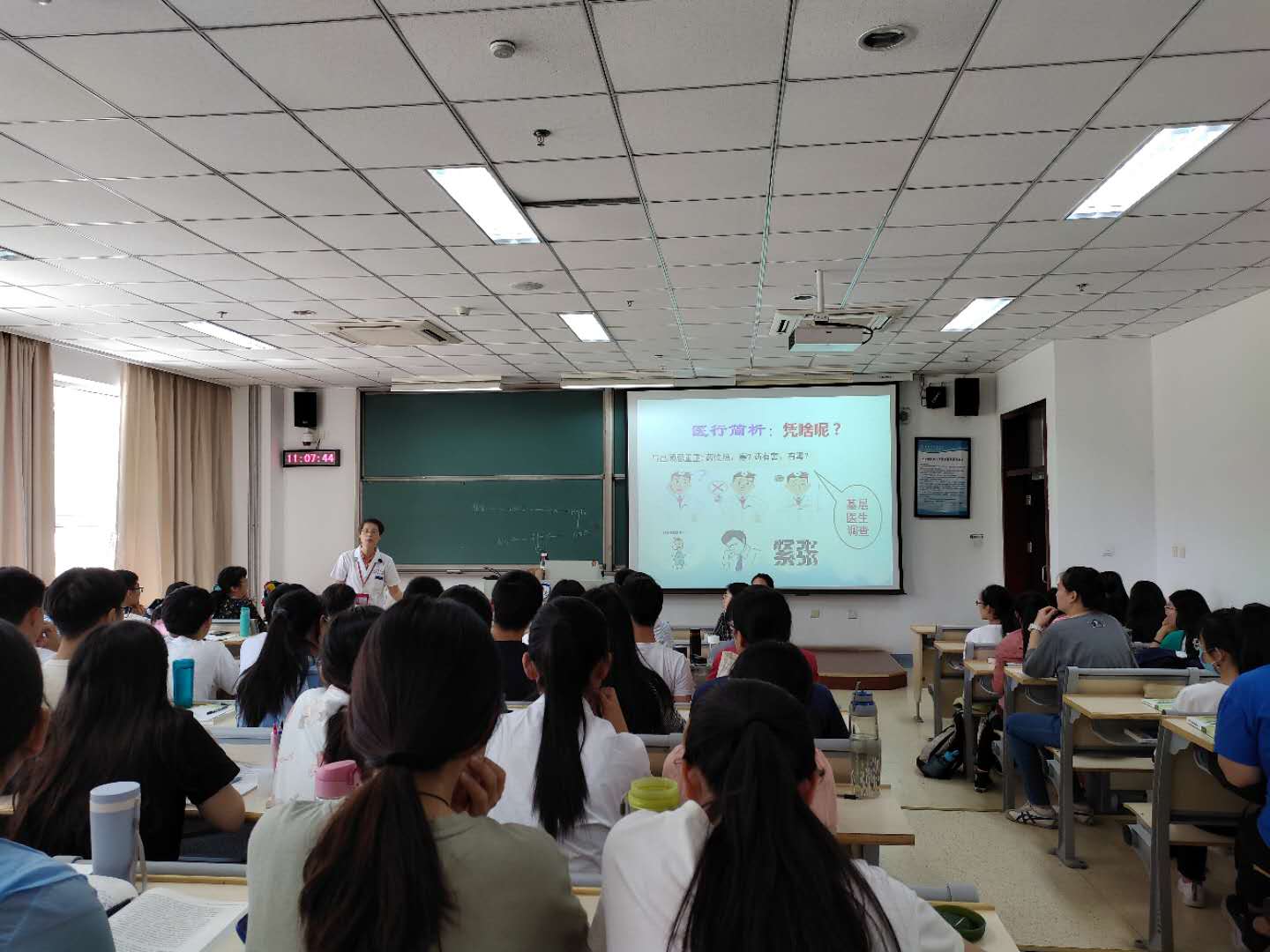 6月4日,张冰教授来到《马克思主义基本原理概论》课堂上,以如何理解“大医精诚”为主题,为同学们带来了一堂别开生面的思想政治理论课。她在课上说,“大医精诚”是中医药行业崇高的理想信念,集中体现了中医人以人民为上、以拯救苍生为己任的职业情怀。如何深入地理解“大医精诚”,是每一位中医老员工都会面对的认识问题,也是他们运用马克思主义基本原理解决理想信念问题的实际诉求。